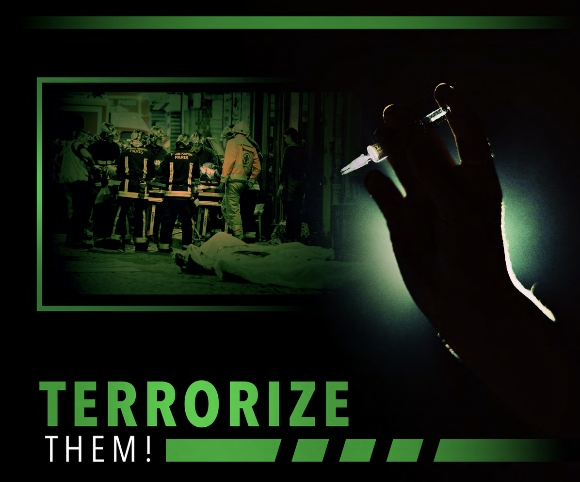 A dedicated section in the “Terrorize Them” series advocates covert attack methods and highlights tactics meant to confuse investigators and reduce suspicion toward attackers.