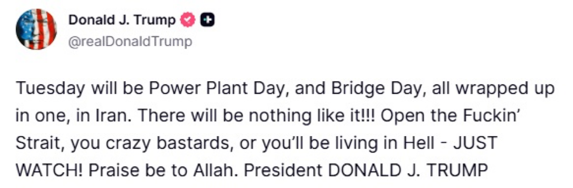 Trump Issues 'Tuesday Strike Warning' Against Iranian Power Plants and Bridges; April 6 Deadline Becomes Hardened Threshold